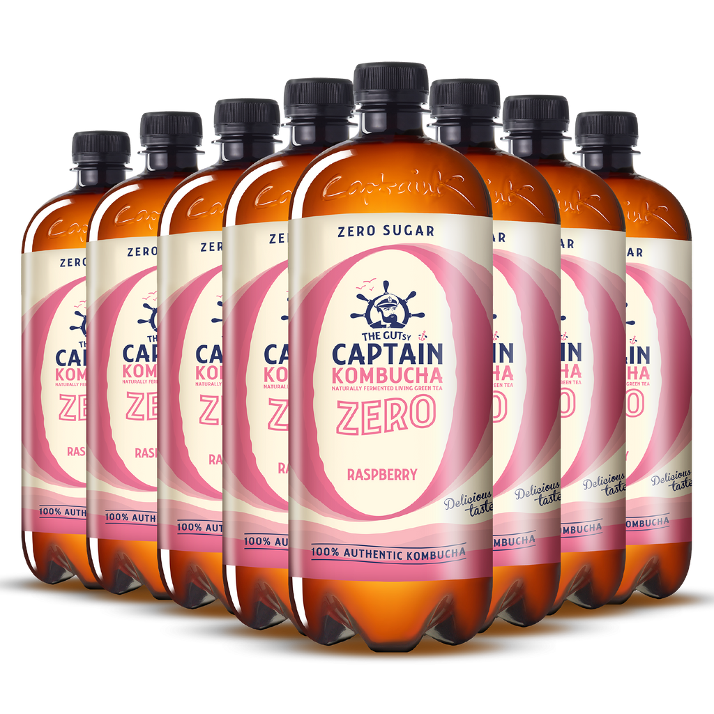• Pack de 8x1L de GUTsy Captain Kombucha Zero Frambuesa.