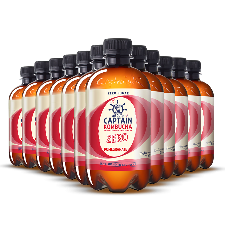 - Pack de 12x400mL de GUTsy Captain Kombucha Zero Granada.